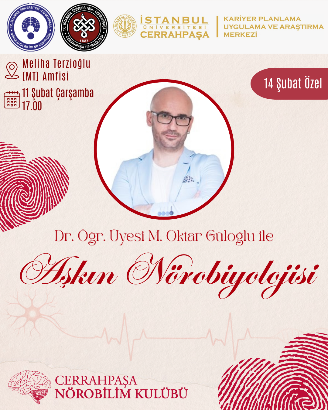 📘 “Aşkın Nörobiyolojisi” adlı kitabıyla tanınan Dr. Öğr. Üyesi M. Oktar Güloğlu, aşkın beyindeki karşılığını bu kez Cerrahpaşa’da bizlerle ele alıyor.